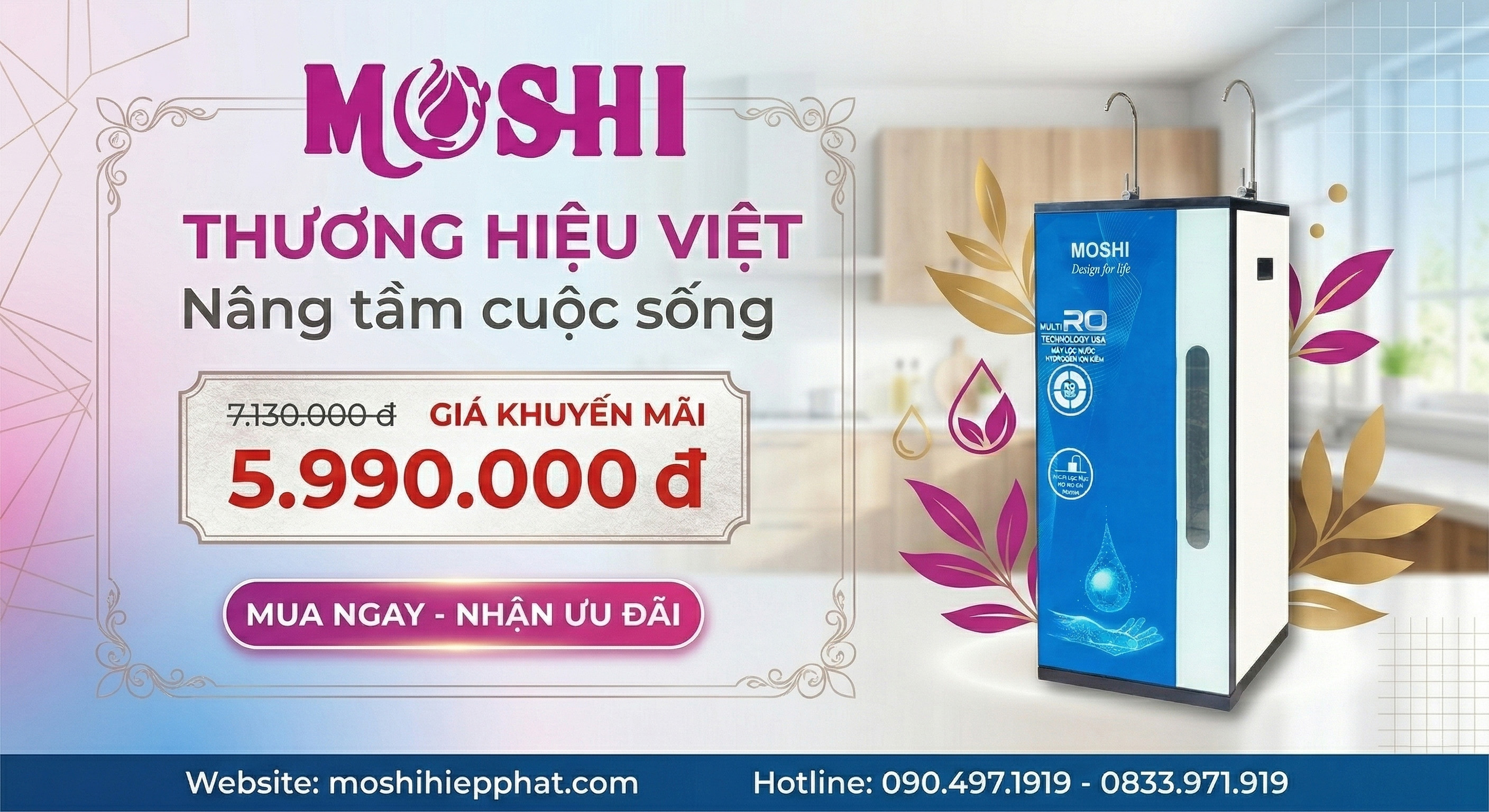 - An Toàn Tuyệt Đối: Được kiểm định nghiêm ngặt về chất lượng, máy lọc nước MOSHI MS 9010 đảm bảo nguồn nước luôn đạt chuẩn, mang lại sự yên tâm tuyệt đối cho gia đình bạn.